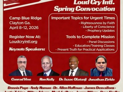 You’re invited to register for the upcoming “Get Ready & Go” Convocation hosted by Loud Cry International. This gathering is designed to strengthen your faith, deepen your understanding of God’s Word, and prepare hearts for the times in which we are living. Camp Blue Ridge Clayton, Georgia April 8–12, 2026 Speakers: Conrad Vine, Ron Kelly, […]