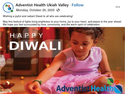 On October 20, 2025, Adventist Health Ukiah Valley issued a public “Happy Diwali” greeting during the annual Hindu festival of Diwali, which occurs in mid-October on the lunar calendar and marks the darkest night of the year. Known as the Festival of Lights, Diwali is observed by lighting oil lamps in homes, temples, and public […]