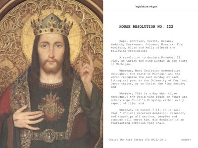 Word & Way, a Christian news site covering faith, culture, and politics, published the news about how the Michigan House of Representatives passed House Resolution No. 222, a measure to honor Sunday, November 23, 2025, as Christ’s universal dominion over the nations. The text of the resolution honors Pope Pius XI’s Feast of Christ the […]