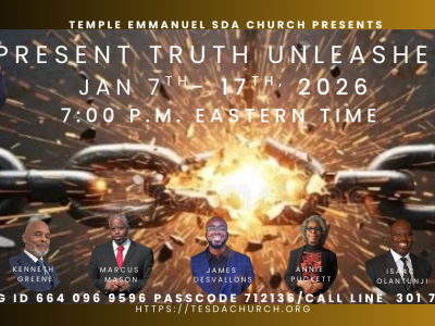 From January 7 to 17, 2026, at 7:00 p.m. Eastern Time, join believers around the world for the annual 10 Days of Prayer, a global Adventist experience focused on spiritual renewal, revival, and a deeper walk with God. Present Truth Unleashed will be a powerful Zoom event and a season of prayer, praise, and present […]