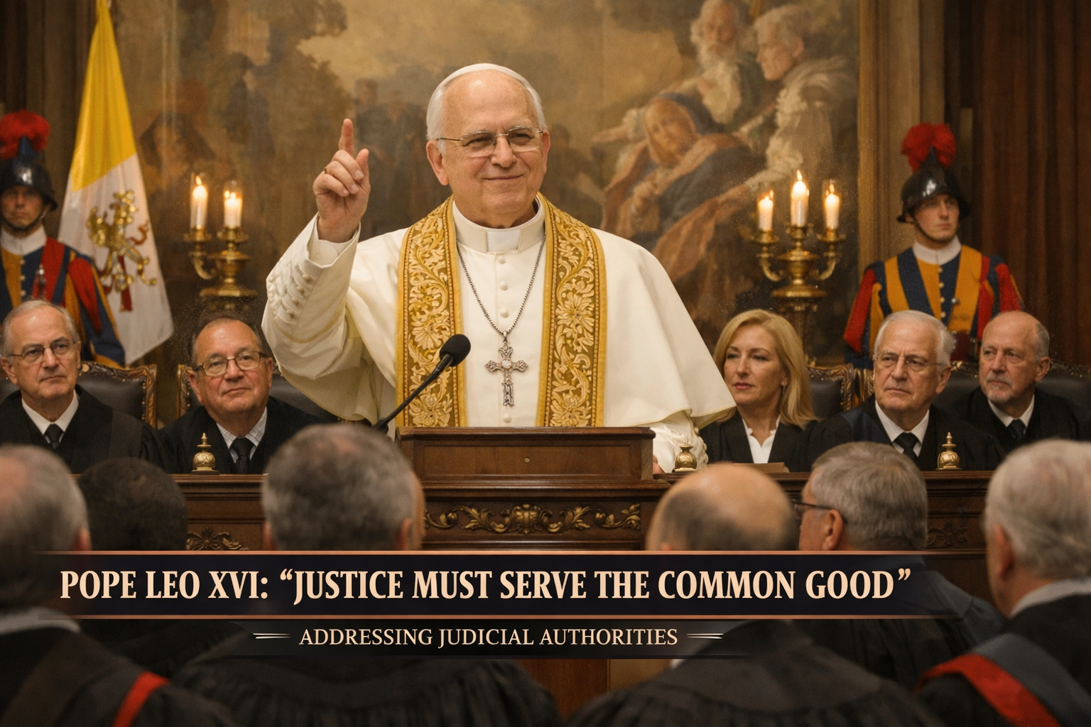 On March 14, 2026, Pope Leo XVI met with judges, lawyers, and members of various judicial bodies and emphasized that true justice cannot be separated from the promotion of the “common good,” a central principle of Catholic social doctrine. Addressing those responsible for interpreting and applying the law, he urged them not to view their work merely as the mechanical enforcement of statutes but to approach their responsibilities through the lens of society’s collective well-being. According to this perspective, the personal rights of individuals—particularly those of minorities—fall underneath what is defined as the greater good of the majority, a concept commonly referred to as the “common good.”